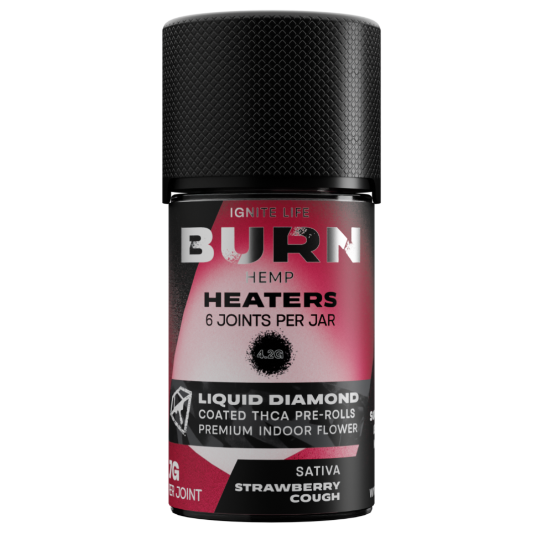 Burn Hemp THC-A Heaters are the pinnacle of pre-rolled excellence in the cannabis market. Each jar contains six meticulously crafted joints, totaling 4.2 grams of top-shelf THC-A flower, each coated with liquid diamonds for unmatched potency and purity.