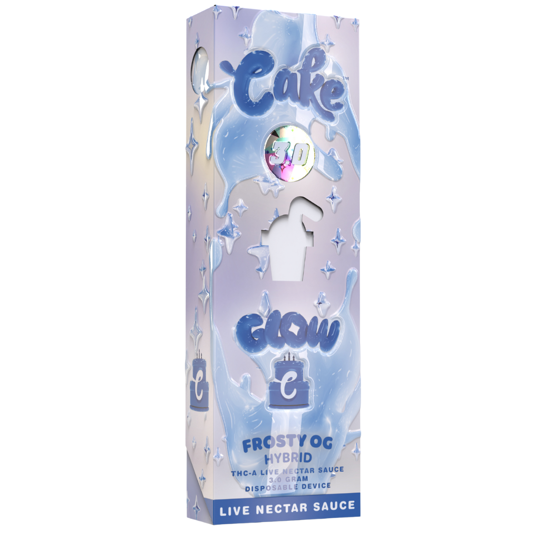 Check out Cake’s latest innovation, the Cake Glow THC-A Disposable, a cutting-edge 3-gram device designed for those seeking both flavor and potency. Infused with premium live nectar sauce-extracted THC-A, this Cake disposable stands out with its potent effects and rich, natural flavors. With a selection of 12 strains, including hybrid, indica, and sativa options, the Cake Glow offers something for every preference, making it easy to find the perfect match for your desired experience.