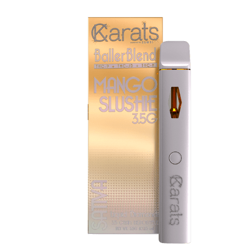 Introducing a new brand that's ready to take over the hemp industry powered by the famous Zombi brand, Carats! Carats Baller Blend Disposables are filled with 3.5g of a proprietary blend of 3 powerful cannabinoids: THC-P, THC-JD, and THC-H. The concentrate in this disposable isn't the regular kind you're using to smoking- its consisted of liquid diamonds. Liquid diamond concentrates are known for their higher purity and is a more premium form of THC.