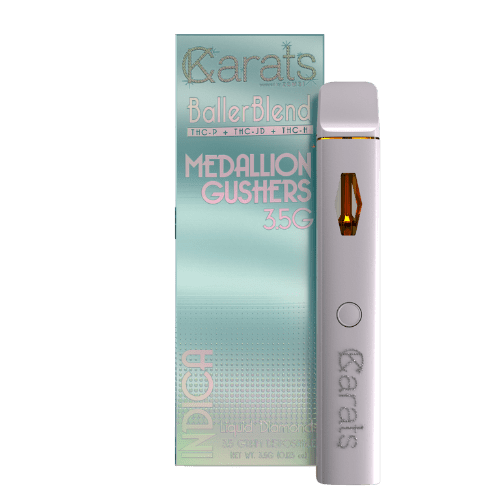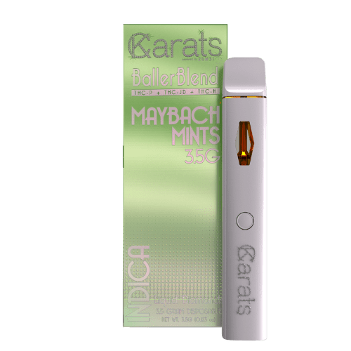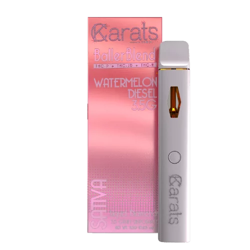 Carats Baller Blend Disposables are offered in 10 potent strains such as Platinum Runtz and Watermelon Diesel.