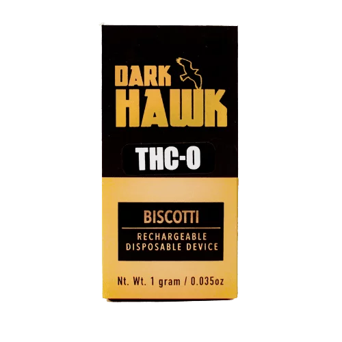 Introducing the all-new disposables crafted by Dark Hawk. These disposables are infused with 1 gram of top-grade THC-O extract and naturally-derived terpenes. You can expect a fruity taste and aroma with each flavor profile that is available. Dark Hawk disposables are rechargeable and are known to provide very heavy draws thanks to their innovative coils. The Dark Hawk THC-O Disposable is currently available in 10 sought-after strains, ranging from flavors like Biscotti to Pink Champagne. Regardless of which you end up choosing, they all provide an extremely potent and savory smoke. Indica, Sativa, and Hybrid strains are offered so that you can get the exact experience you desire.