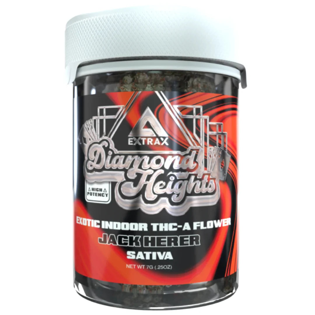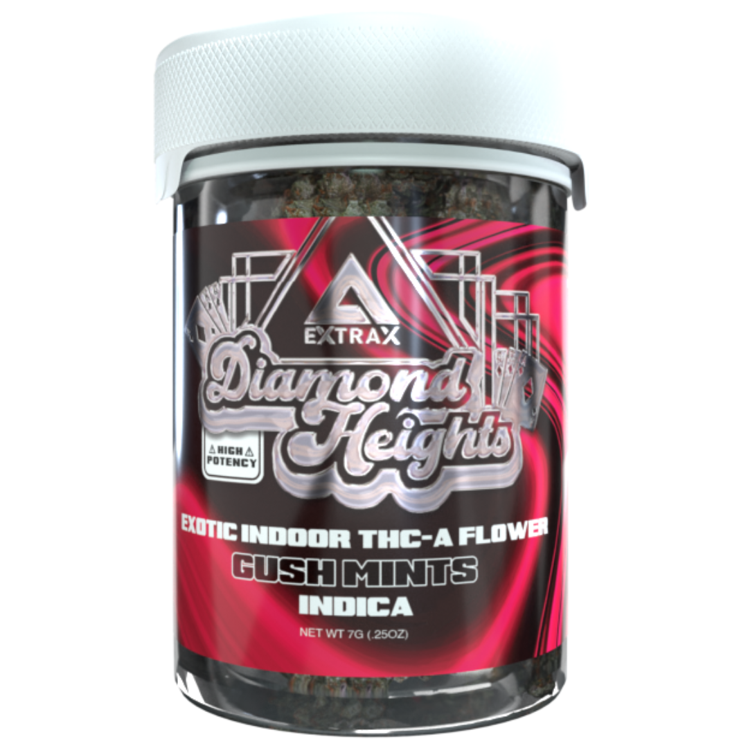 Indulge in the height of luxury with Delta Extrax's THC-A Diamond Heights Flower, meticulously crafted to deliver an unparalleled smoking experience. Extrax's artisanal indoor-grown exotic THCA hemp flower boasts a potent concentration of THCA, enveloping you in its exquisite aroma and rich flavors with every inhale. Each 7-gram jar is carefully curated to ensure maximum quality and potency, offering a truly premium smoking experience that will elevate your senses to new heights.