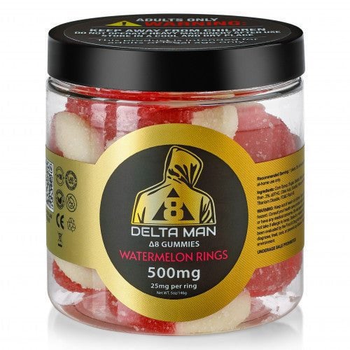 Delta Man Delta 8 gummies. These gummies will satisfy your cannabis craving with every bite. Each gummy is packed with 25mg of Delta 8.
