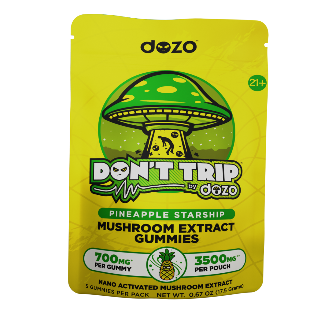 Following the success of their previous mushroom gummies, Dozo has just released the new, upgraded version- the Dozo Don't Trip THC-P Mushroom Gummies. These gummies are infused with 3500mg between their psychedelic extract containing muscarine, muscimol, and ibotenic acid at 700mg per serving. But, this time, they've enriched the gummies with THC-P to provide an even stronger effect. Dozo has nano-activated the ingredients for a faster and harder hitting experience. They?re also crafted with natural ingredients and are completely vegan and gluten free.
