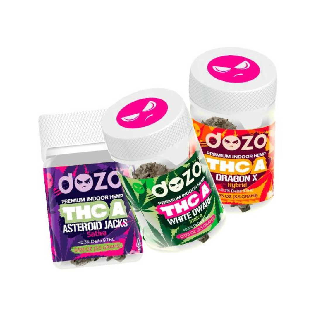 The latest collection of THC-A flower from Dozo is now available! The collection comprises 3.5-gram jars of carefully cultivated indoor hemp flower in three different strains. Each bud is expertly hand-trimmed, providing a flawless appearance that matches its potency. Similar to THC, THC-A flower is recognized for producing almost identical effects.