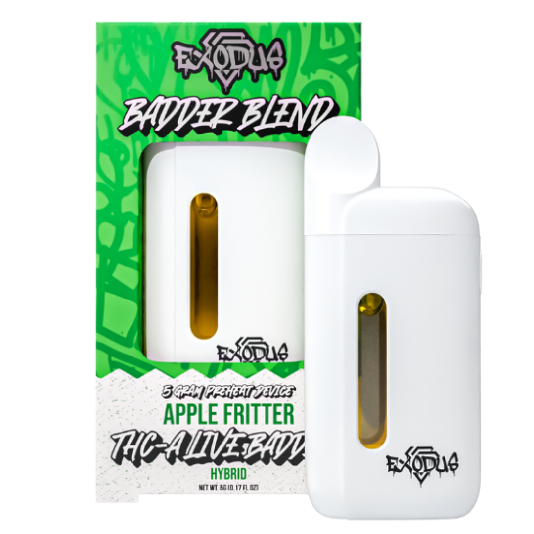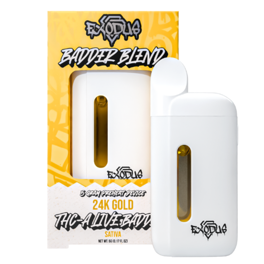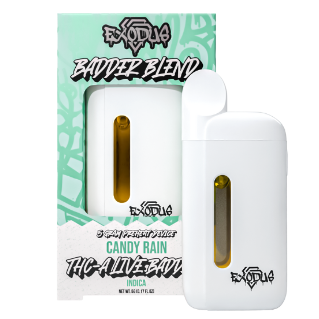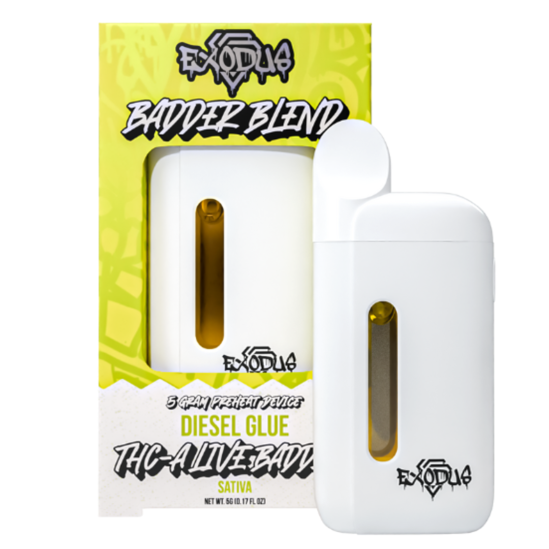 Introducing the Exodus Badder Blend THC-A Disposable, a 5-gram powerhouse engineered for users seeking bold flavor, intense potency, and superior performance in a sleek, easy-to-use device. Each disposable is infused with a proprietary blend of THCA Live Badder, HXY 9-THC, and Delta 8 THC Live Resin, delivering a smooth, full-spectrum experience with fast-acting effects.