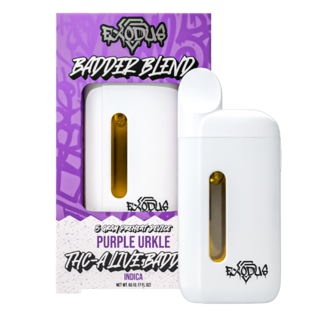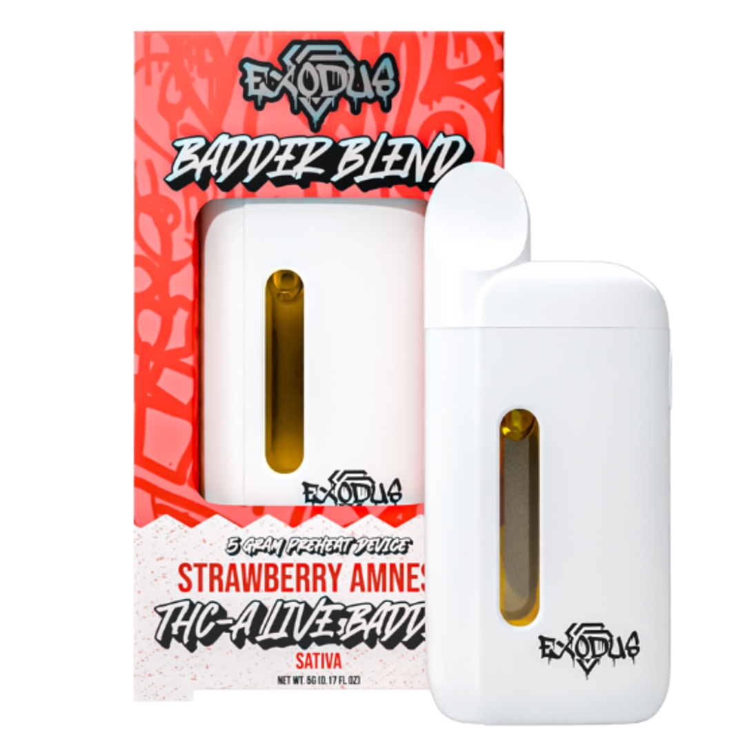 Designed for performance and convenience, this disposable features dual coils for rapid heat-up, a preheat function, and USB-C charging—ensuring consistent vapor production from start to finish. With 12 strain options across Indica, Sativa, and Hybrid profiles, the Exodus Badder Blend Vape provides tailored sessions for any time of day or desired effect.