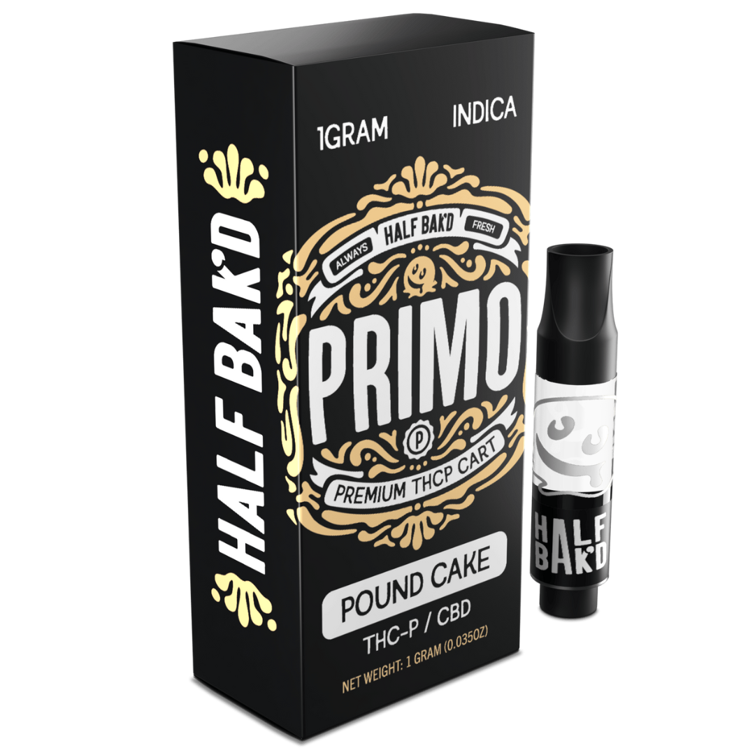 The Half Bak'd Primo Cartridge is the epitome of vaping excellence and is designed for those who seek unmatched potency and a superior experience. Each cartridge is filled with 1 gram of a powerful THC-P blend, delivering potency that is 5-10 times stronger than traditional delta 9 THC, setting a new standard for intensity and effectiveness.
