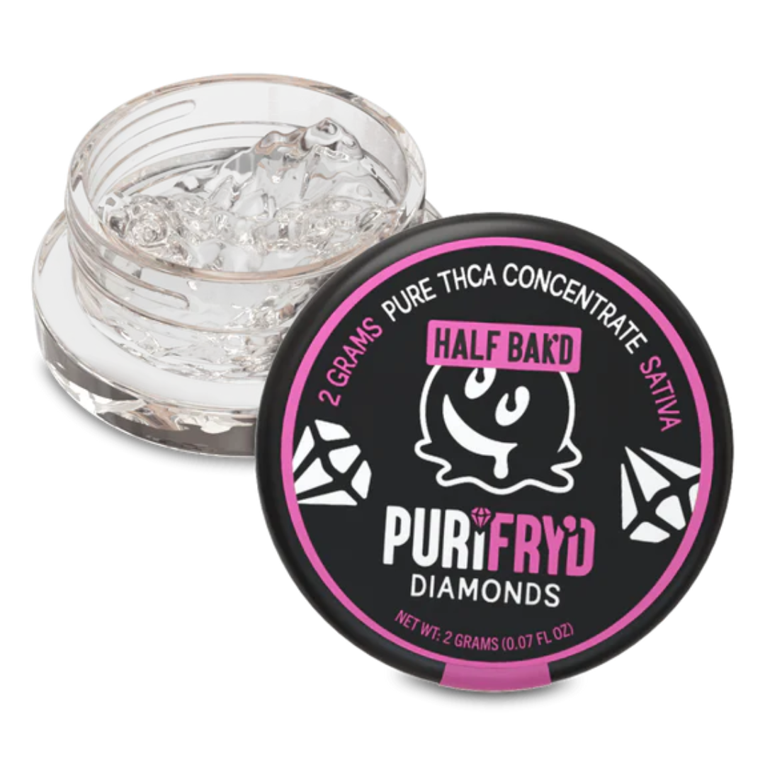 Half Bak’d presents Purifry’d Diamonds, a pinnacle in THC-A concentrate. With 2 grams of pure THCA concentrate per package, these diamonds promise an unparalleled potency that will satisfy even the most seasoned enthusiasts. Each batch undergoes rigorous third-party lab testing, ensuring the highest standards of quality and purity. Available in 4 distinct strains, including options in indica, sativa, and hybrid varieties, Purifry’d Diamonds cater to a wide range of preferences and effects. Prepare yourself for an intense and transformative experience with these extremely potent diamonds. Whether you’re seeking relaxation or a burst of creativity, Half Bak’d Purifry’d Diamonds deliver a premium THC-A concentrate experience that’s second to none.