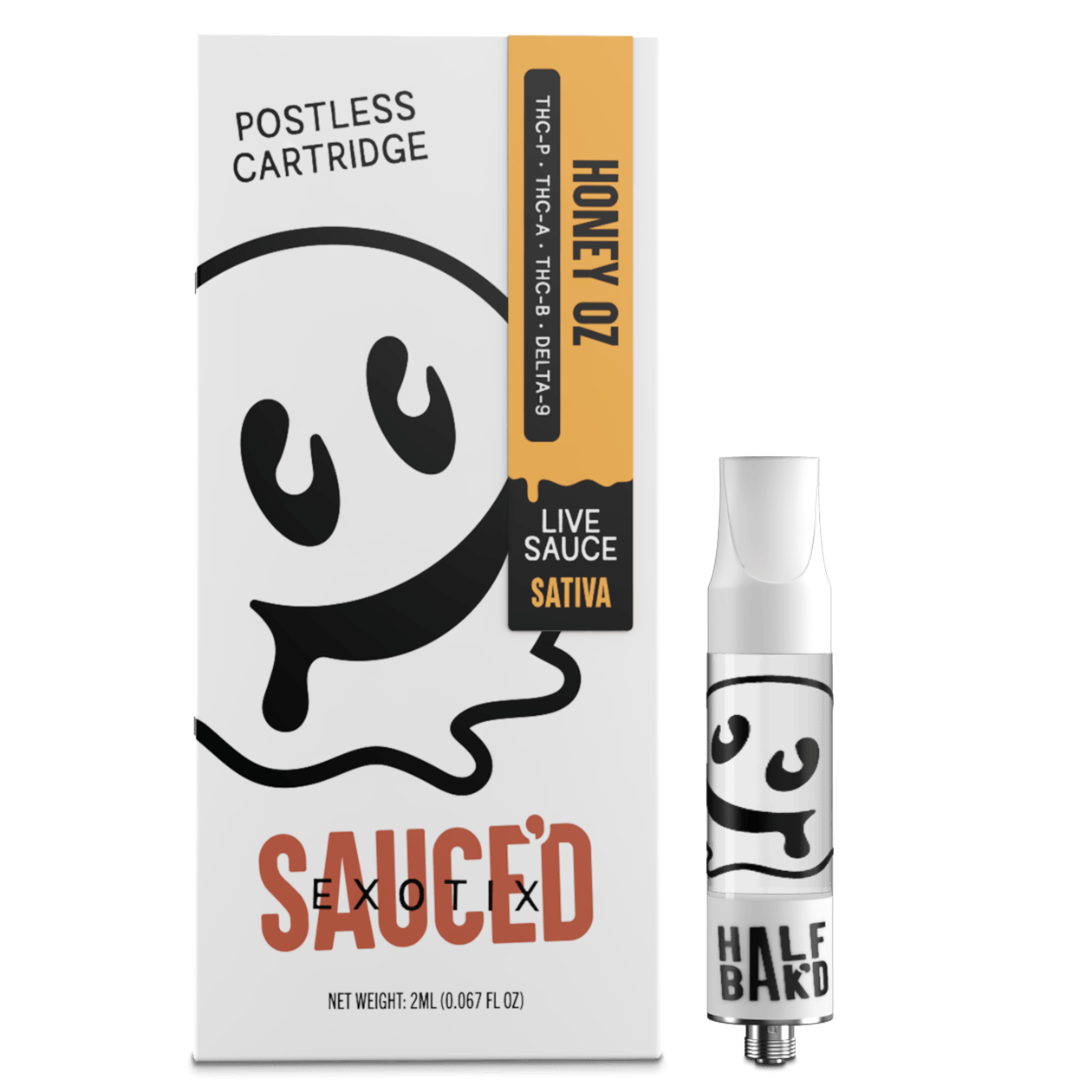 Elevate your vaping experience with the Half Bak’d Sauce’d Exotix Cartridge. Offering a premium combination of potent live resin, advanced ceramic coil technology, and iconic flavor profiles, this cartridge is a must-have for any hemp connoisseur. Whether you’re a fan of Indica, Sativa, or Hybrid strains, this product provides a tailored and satisfying experience every time.