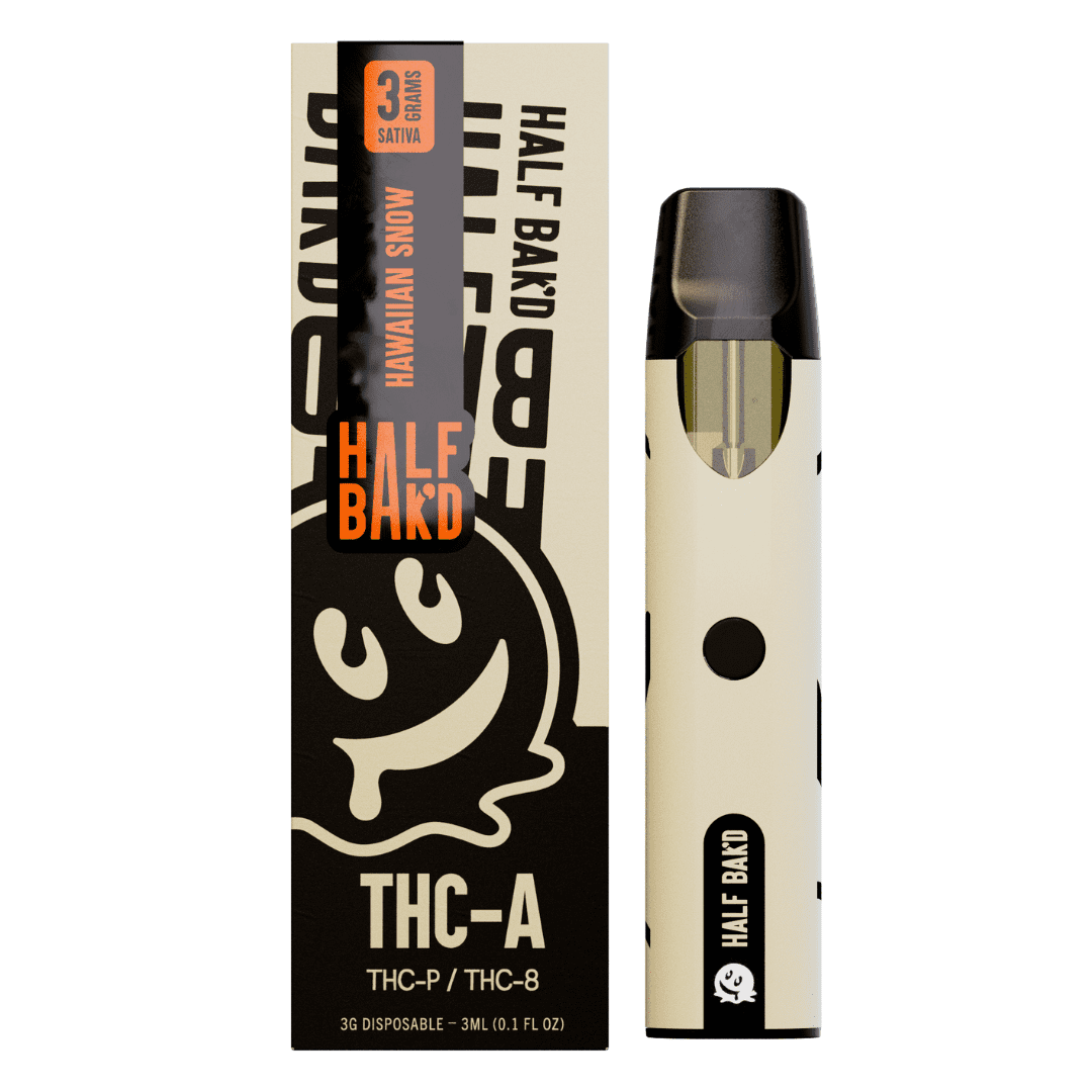 - Rechargeable Half Bakd pen infused with 3 grams of THCA, THCP, and THC8