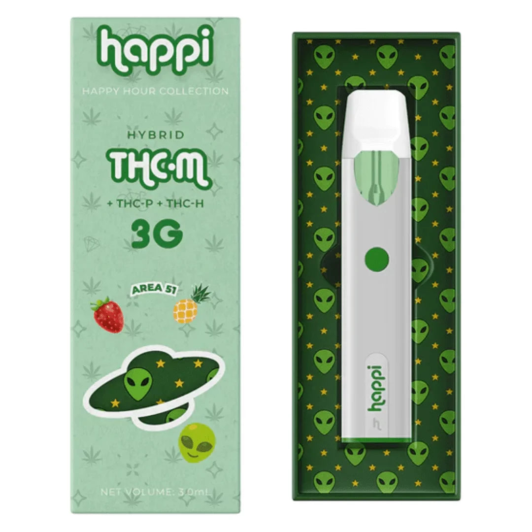 The Happi THC-M Disposable is the newest product to enter the rapidly expanding Happi collection! It is a disposable vape pen made to provide consumers with the most flavorful and smoothest smoke possible. The disposable pen contains 3 grams of naturally-derived strain-specific terpenes combined with THC-M, THC-P, and THC-H distillate. Terpenes and the distillate blend work together to provide smokers an experience like no other.