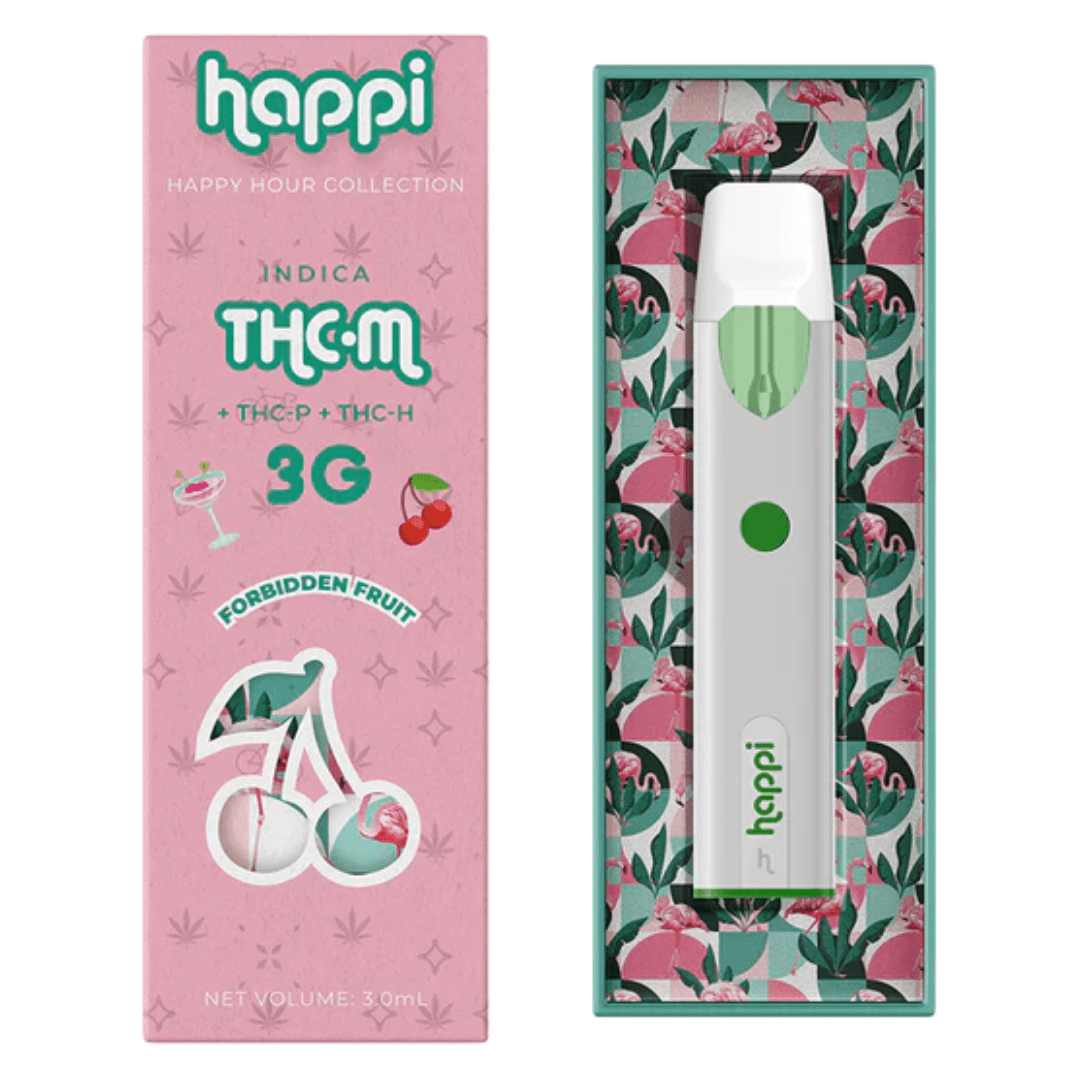 There are 5 different strains available such as Forbidden Fruit for the Happi THC-M Disposable- with indica, sativa, and hybrid options. Whether you want a euphoric and relaxing effect or a more energizing and uplifting high, each strain has been carefully chosen to guarantee that it offers the ideal smoking experience.