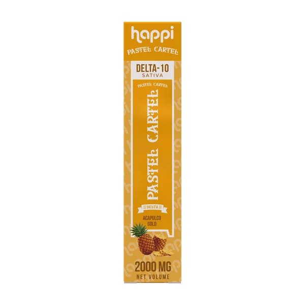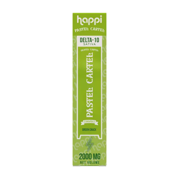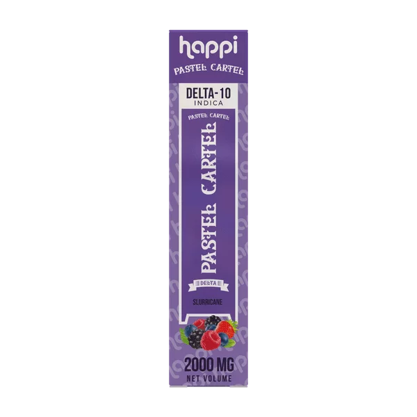 Happi has teamed up with Pastel Cartel to bring you an exclusive collection. Introducing the Happi x Pastel Cartel Delta 10 Disposable. This device is incorporated with 2 grams of premium delta-10 THC distillate extracted from carefully-cultivated hemp flower and blended with natural terpenes. With every puff, you will experience mouth-watering bursts of flavor that will have you impatient for your next. This disposable features a ceramic coil to assist in a longer distillate lifespan, smoother hits, and better flavor.