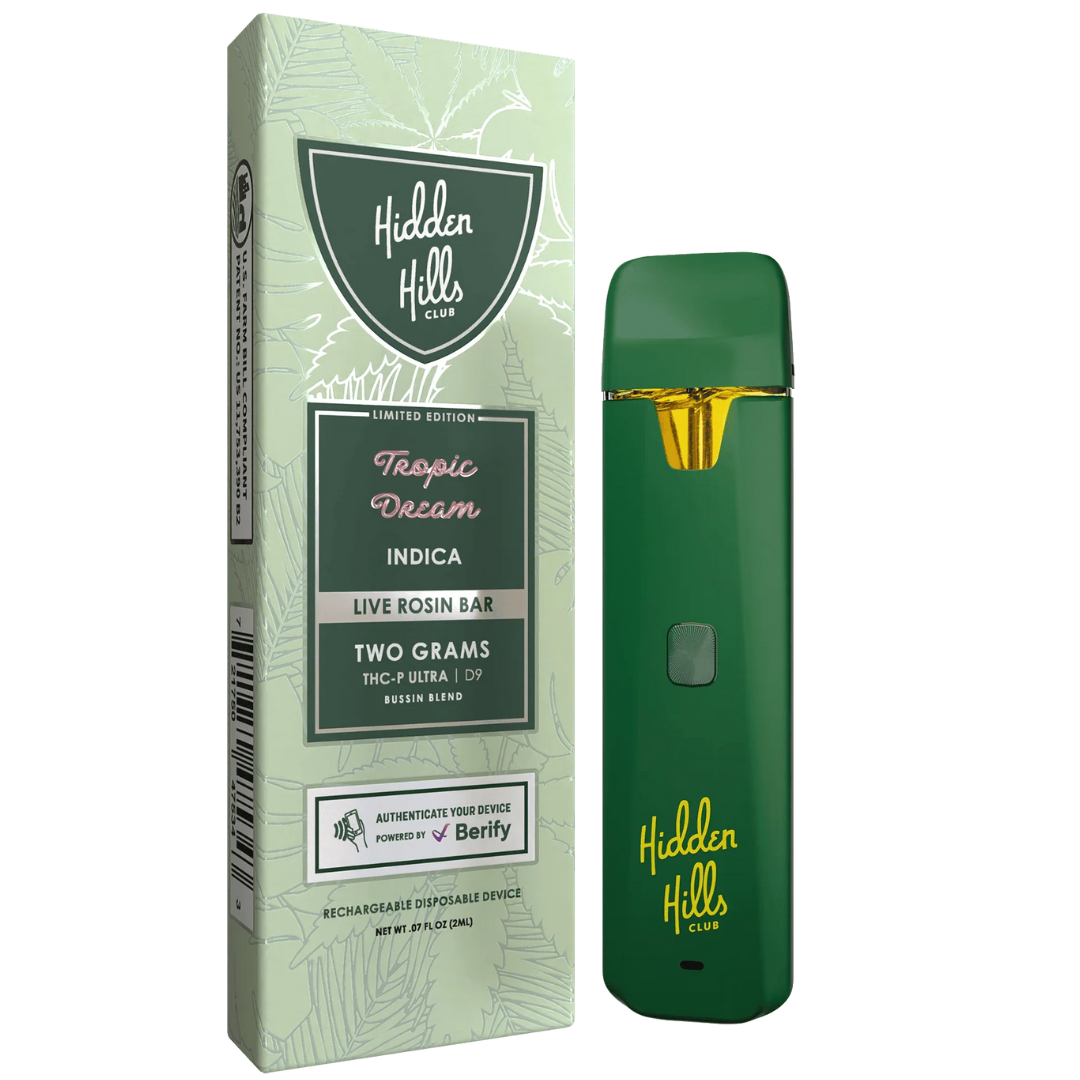 The Hidden Hills Club Bussin Blend Disposable Vape combines power, flavor, and innovation in one sleek 2-gram device. Infused with a potent blend of THC-P and Delta 9, this disposable delivers hard-hitting effects with smooth, terpene-rich clouds. Each hit is enhanced by live rosin extract for authentic strain flavor and full-spectrum potency. Designed for consistency and durability, the Bussin Blend vape is equipped with an improved ceramic coil that ensures even heating and zero clogging, every time.
