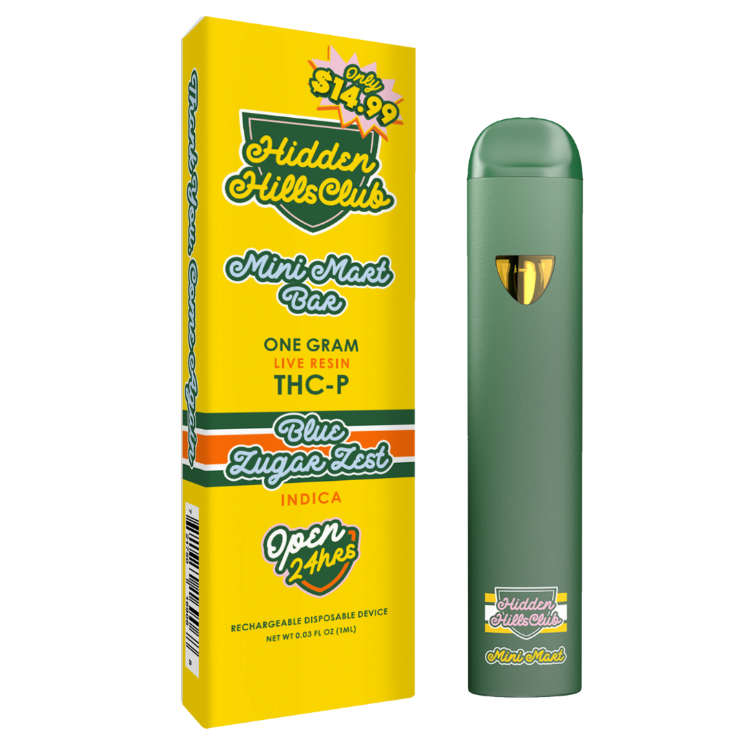 The Hidden Hills Mini Mart Bar offers premium performance at an accessible price, making it ideal for both new and experienced hemp users. Its compact size and smooth live resin formulation make it perfect for on-the-go use, while the THC-P infusion ensures hard-hitting potency and flavor in every puff.