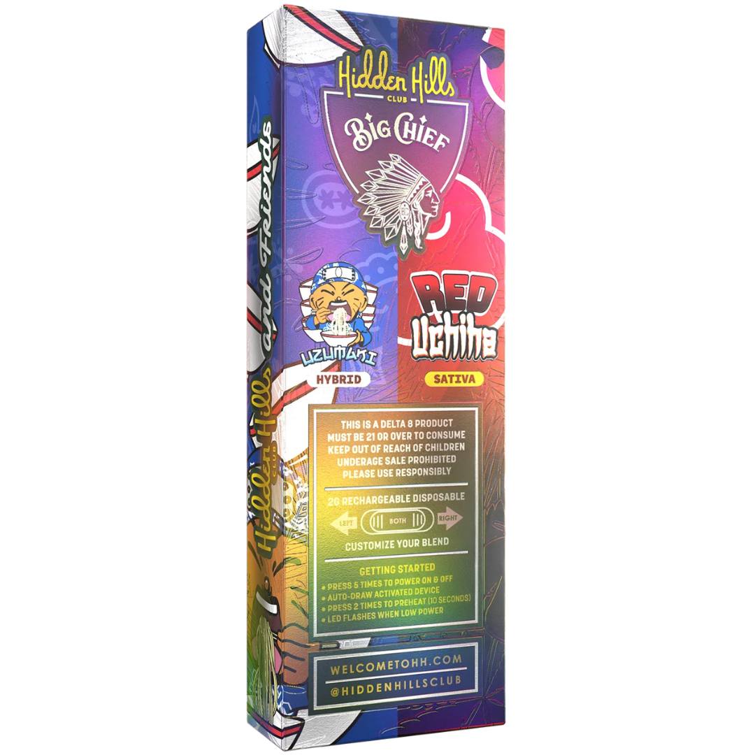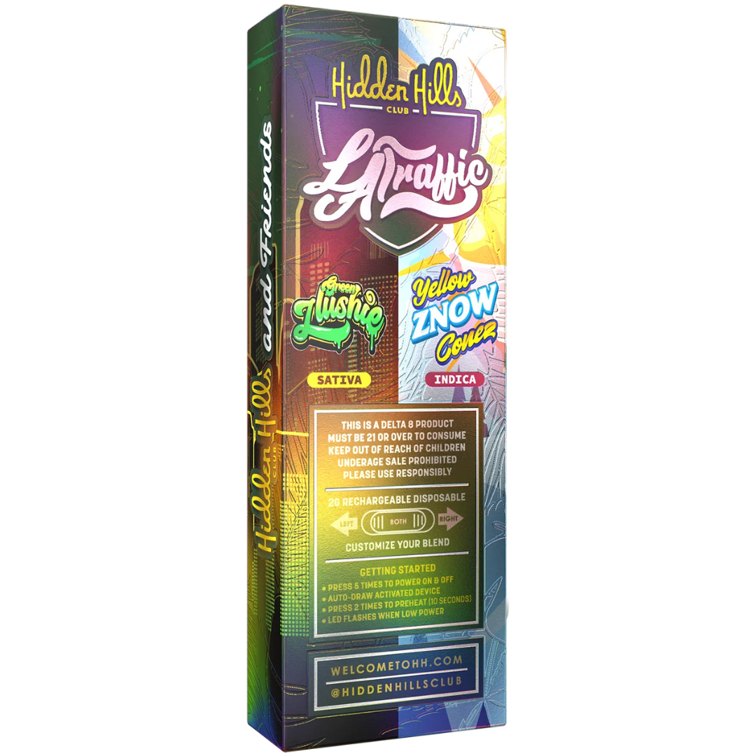 Explore the versatility of the Hidden Hills & Friends Dual Device, a groundbreaking innovation in the world of hemp vaping. This device sets itself apart by offering 2 grams of disposables, each infused with two distinct strains—1 gram per strain—providing a customizable vaping experience that caters to diverse preferences and occasions. This Hidden Hills vape features three different blends, each a unique collaboration with renowned brands Big Chief, LA Traffic, and Plugplay, ensuring a variety of high-quality options. These super potent disposables contain a powerful blend of THC-A, THC-P, and THC-M, crafted to deliver maximum potency and exceptional effects.