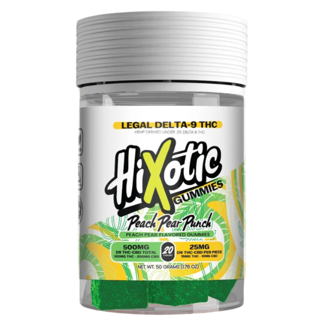 HiXotic Delta 9 Gummies are expertly formulated to deliver a balanced and enjoyable experience, combining 15mg of Delta 9 THC and 10mg of CBD in each gummy. With 20 gummies per jar, you get a total of 500mg of cannabinoids, ideal for users seeking both potency and harmony in their edible routine.