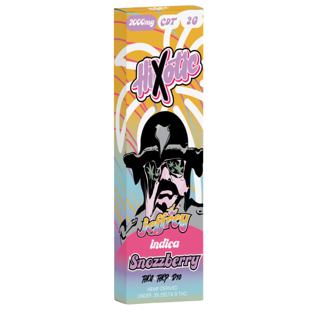 Meet the HiXotic The Jeffrey Disposable, a premium 2-gram vape infused with a powerhouse blend of THCA, THC-P, Delta 10, and HHC. Designed for hemp users who want both potency and control, this button-activated device puts the full experience at your fingertips. Whether you're unwinding, energizing, or balancing your day, this disposable delivers consistently smooth and satisfying results.