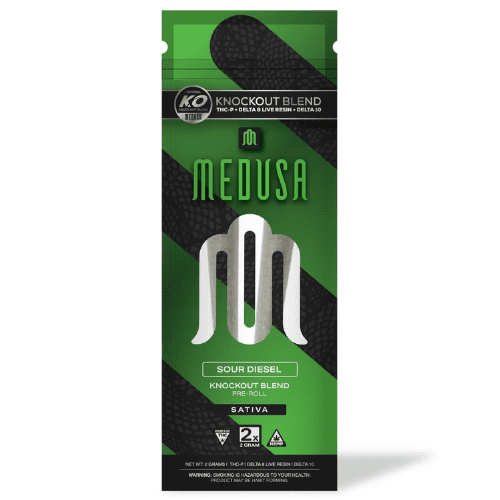 When you meet Modus' gaze, you can't help yourself from getting stoned! Introducing the all-new Modus Knockout Blend Prerolls. Each package brings 2 joints at a gram each for a total of 2g. These joints are packed with premium, carefully-cultivated flower infused with delta-8 live resin, THC-P, and delta-10. They're also blended with strain-specific terpenes to give you an unmatched smoking experience.