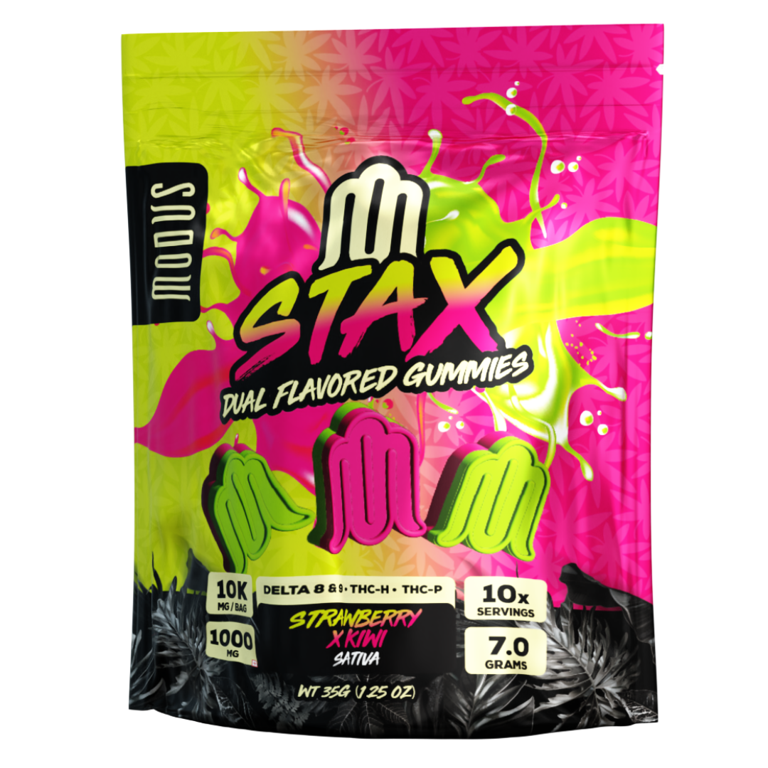 Crafted for connoisseurs and thrill-seekers alike, these dual-flavored gummies combine juicy fruit pairings for an unmatched taste sensation. Whether you’re in it for a relaxing evening or a powerful, uplifting journey, Modus Stax offers a flavorful and formidable edible experience.