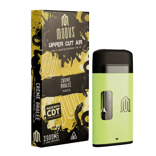 The Modus Uppercut Air Disposable is a cutting-edge disposable vape that combines the power of THC-H, live resin delta 8 THC, and THC-JD for an intense and satisfying experience. With 2 grams of the potent ?uppercut blend? in each device, this disposable vape is perfect for those who want to take their hemp experience to the next level. Made with real terpenes, the Modus Uppercut Air Disposable offers the true taste of your favorite strains. Also, its draw-activated design means that it is easy to use and convenient to carry. Simply inhale and the device will automatically activate, allowing you to enjoy the full effects of the uppercut blend without having to press any buttons.