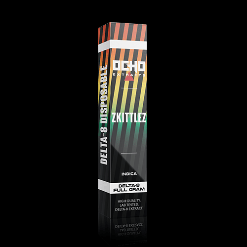 The all new Delta 8 disposable by Ocho Extracts. This d8 vape disposable comes pre-charged and pre-filled with 1 gram of pure delta 8 distillate and organic terpenes. This D8 disposable comes in 3 different flavors.