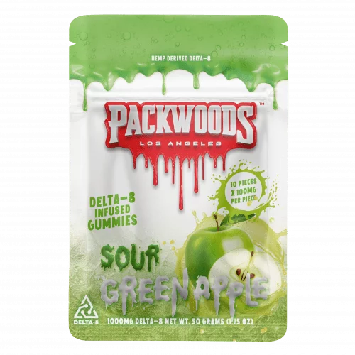 Started in California with a passion for manufacturing high end exotic blunts, they have now expanded into the hemp scene by coming out with Federally legal hemp derived products. Packwoods Delta 8 Gummies are infused with 100mg of pure and potent delta-8 thc per gummy. The entire bag contains a total of 1000mg. there are 10 total edibles per bag.