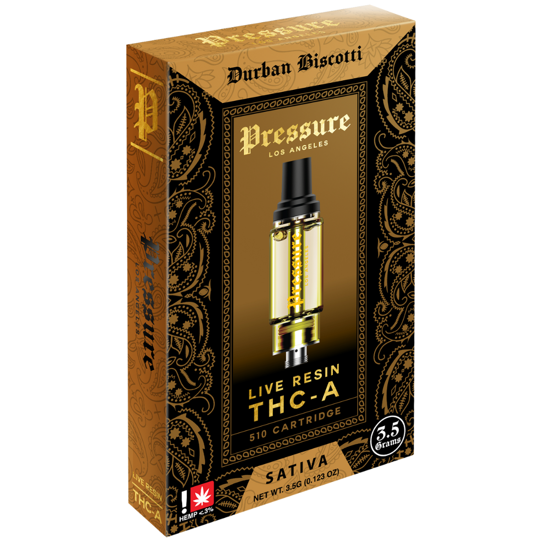 Feel the intensity of the Pressure Live Resin THC-A Cartridge, designed to deliver a profoundly satisfying and elevated experience. Each cartridge contains a high-potency formula that guarantees a dynamic encounter with each use. Crafted with premium full-glass tanks and solid metal construction, these carts offer a premium feel and durable design.