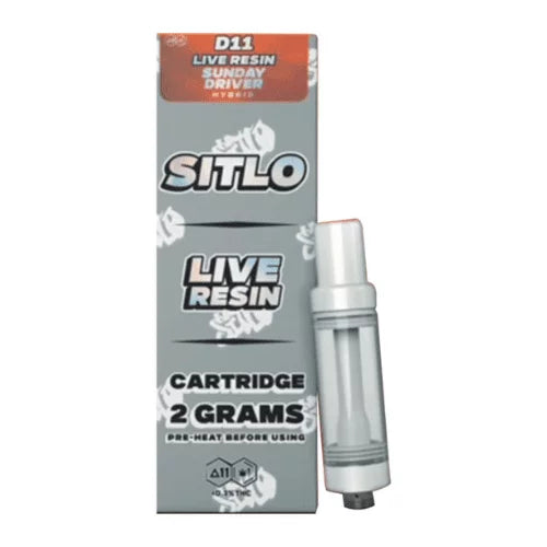 The SITLO D11 Live Resin Cartridge is currently offered in the Sunday Driver strain (Hybrid).