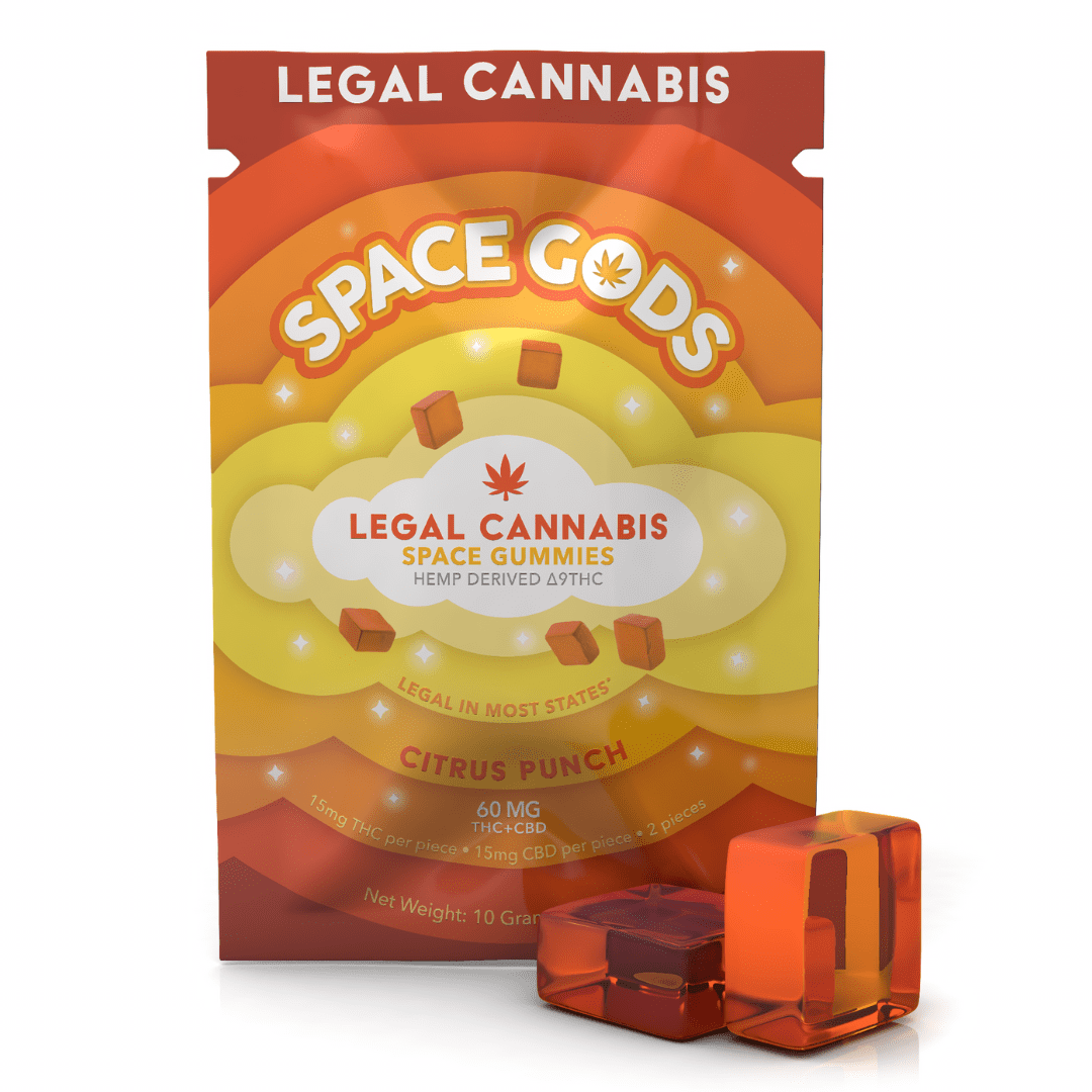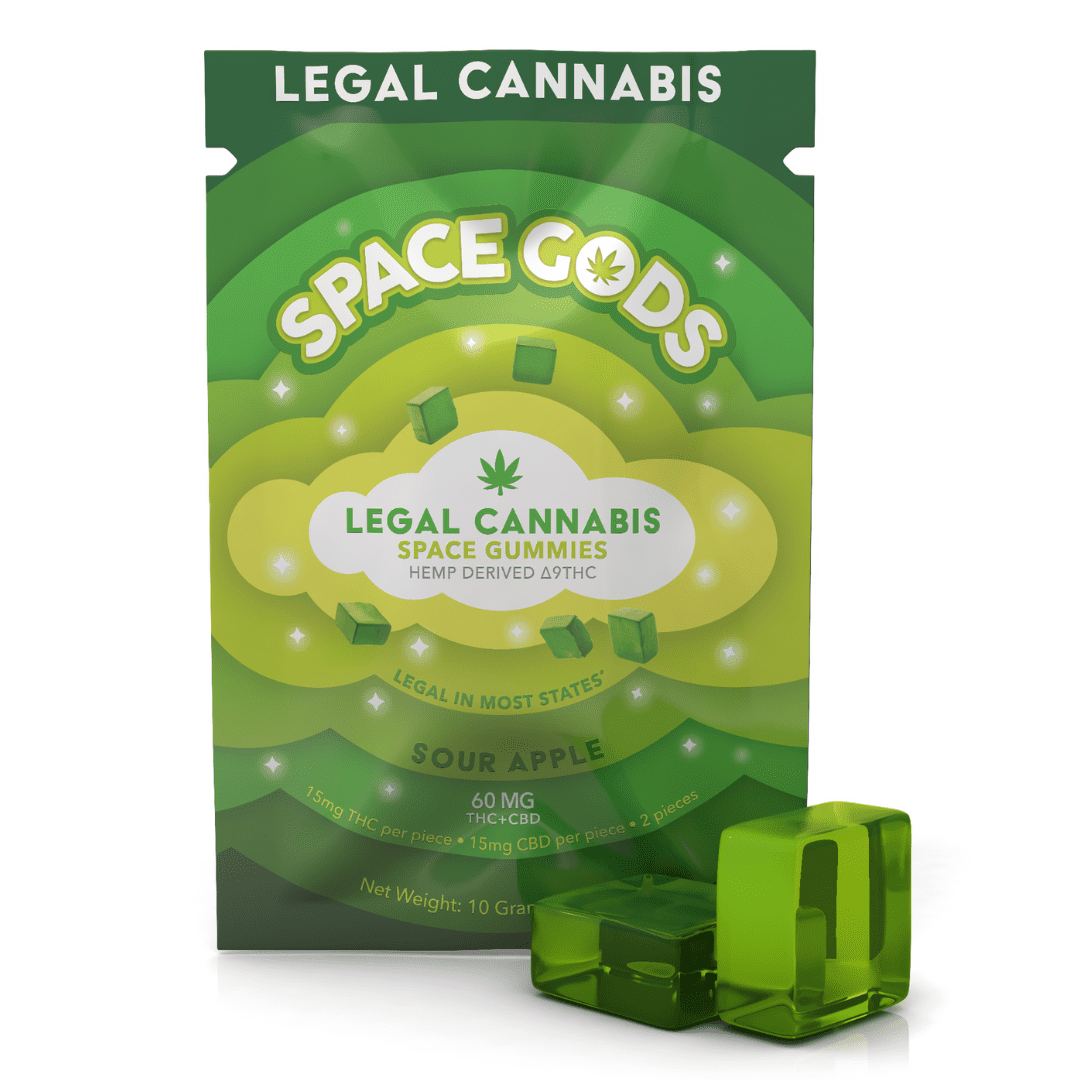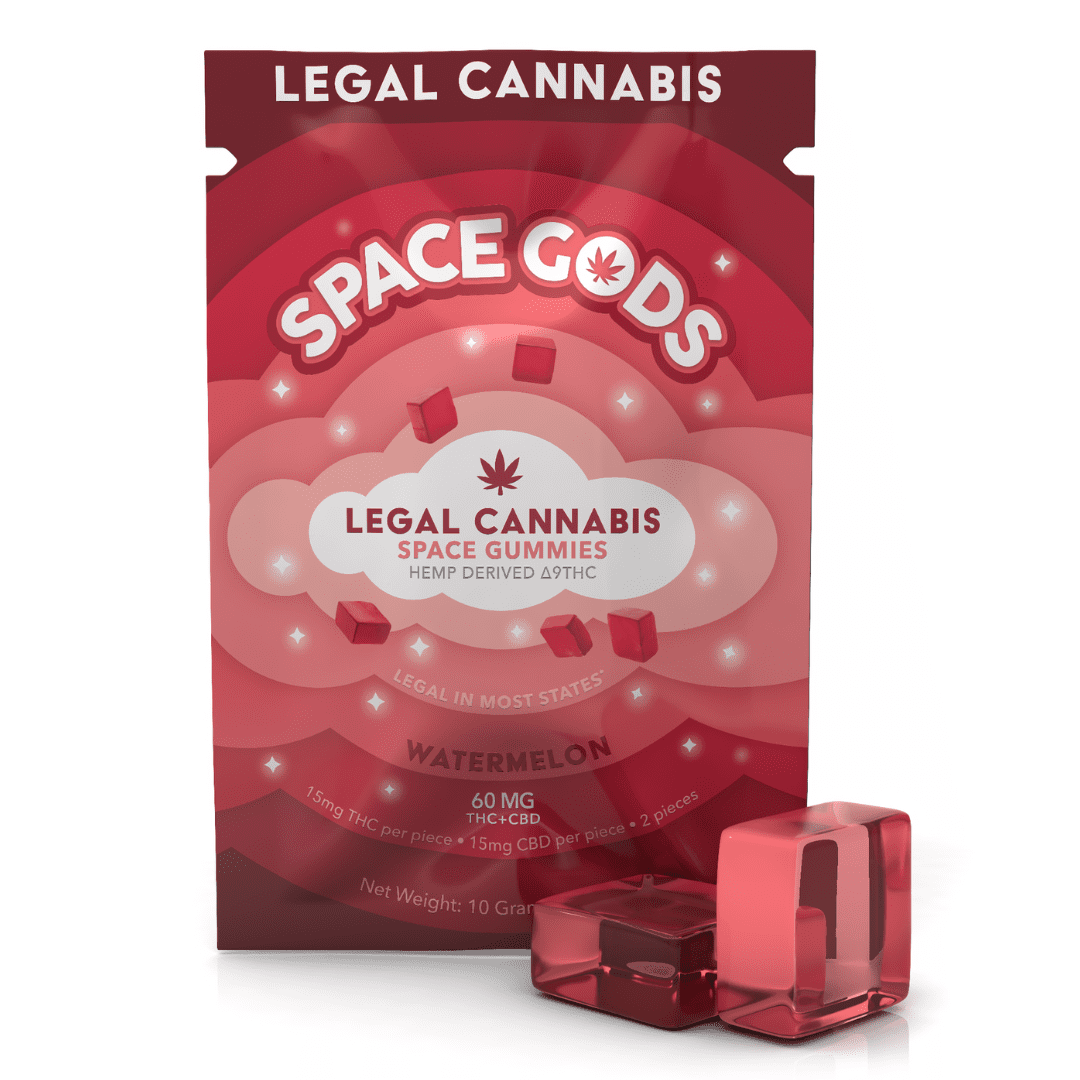 Presenting the Space Gods Delta 9 Gummies! These bite-sized treats are infused with 15mg of delta-9 THC and 15mg of CBD per serving. Each package brings 2 gummies for a total of 60mg. They're crafted using natural and organic flavors, food colorings, and hemp extracts. The blend of delicious fruit flavors will have you craving for another bite!