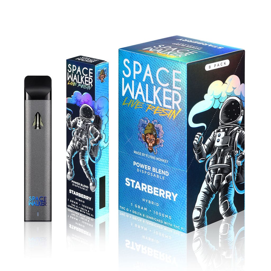 Check out the newest product from the Space Walker brand. Space Walker Live Resin Power Blend Disposables are pre charged and pre filled with 1000mg of THC-O and Delta-8 THC, and lastly enriched with THC-P. This 3 cannabinoid blend is potent and provides users with an uplifting and euphoric buzz.