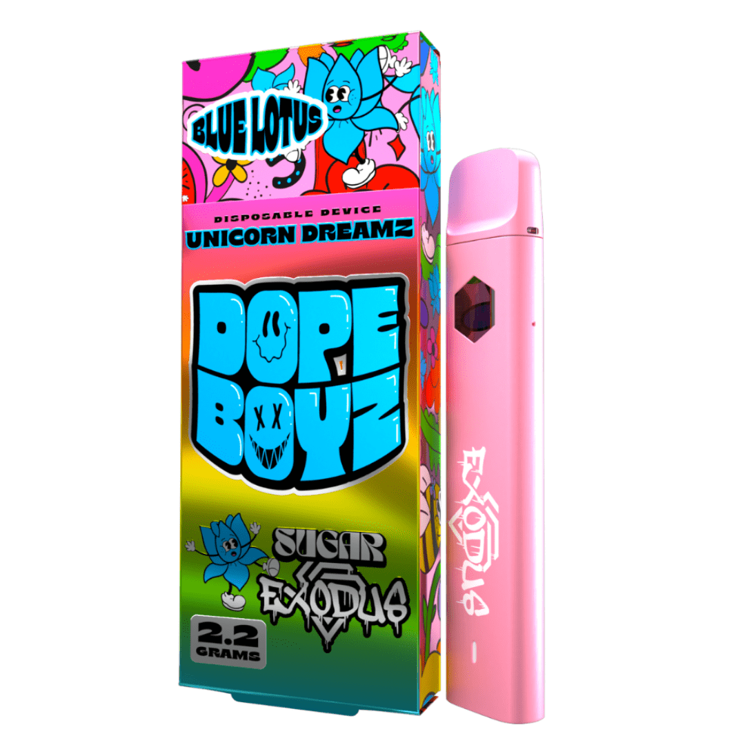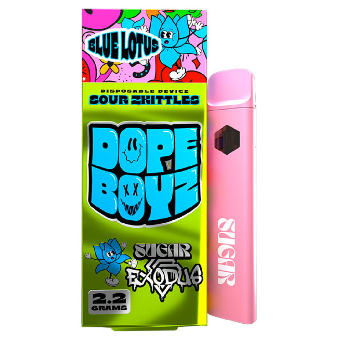 Go on a unique journey with the Sugar Exodus Dope Boyz Blue Lotus Disposable! This groundbreaking product is here to revolutionize your hemp experience. Forget about the same old, and dive into something new and exciting with Sugar and Exodus' proprietary blend of blue lotus extract, premium HHC distillate, and carefully selected strain-specific terpenes. It's time to elevate your mood, embrace euphoria, and experience deep relaxation like never before.