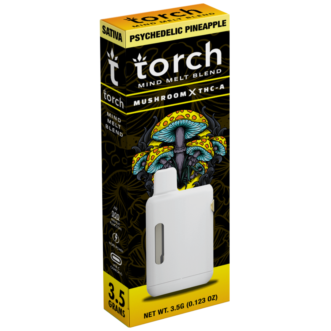 Embark on a mind-altering journey like never before with the Torch Mind Melt Blend Disposable. This innovative 3.5-gram rechargeable device is a fusion of mushroom extract and THC-A, offering an extraordinary and legally psychedelic high that's unlike anything you've encountered. With 10 distinct and unique strains to choose from, each offering a diverse and captivating experience, the Mind Melt Blend Disposable takes you on a voyage to stress-melting relaxation that's both profound and unparalleled.