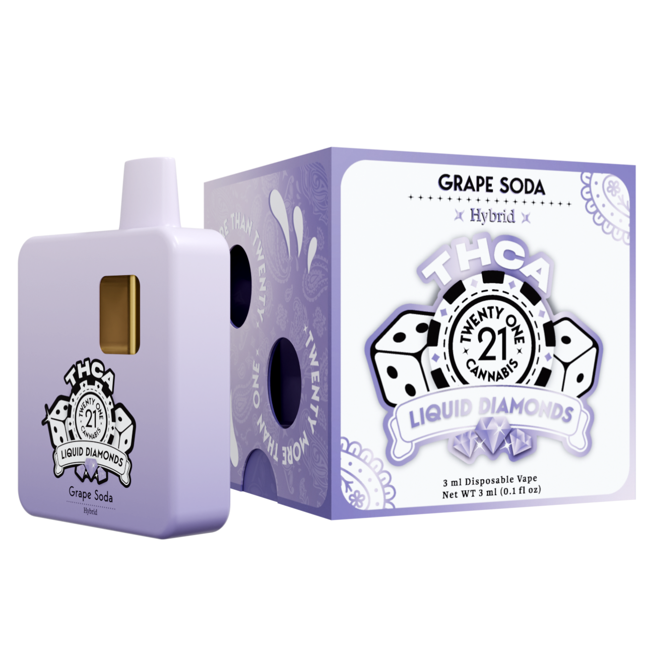 Discover the ultimate in convenience and performance with the Twenty One Liquid Diamonds THC-A Disposable, a powerhouse device designed for smooth, potent hits. Infused with a premium blend of liquid diamonds THCA, Delta 8, and HHC, this 3-gram disposable delivers unmatched flavor and effects with every puff.