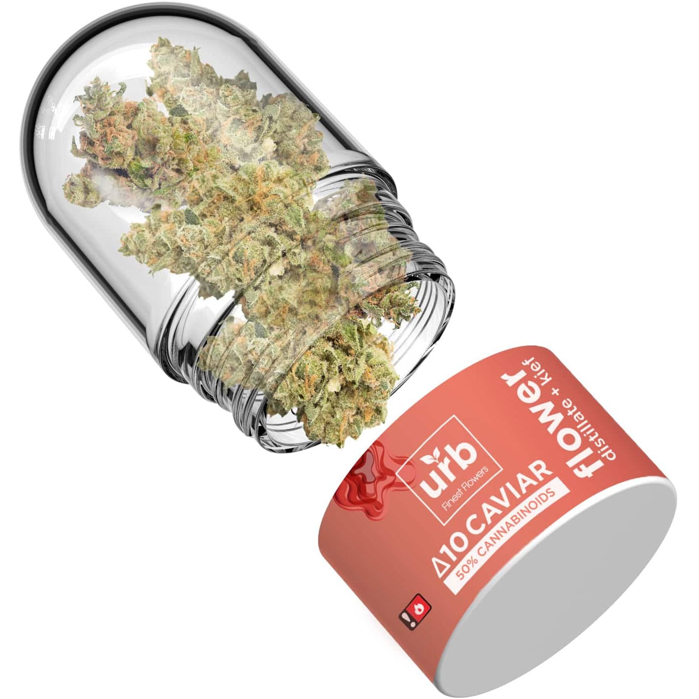 This caviar flower which is grown indoor is premium hemp flower, infused with Delta 10 THC Distillate. URB is a leading manufacturwr of hemp products and hemp derived products. This is their new Delta 10 flower, which provides users with an uplifting and euphoric feeling.