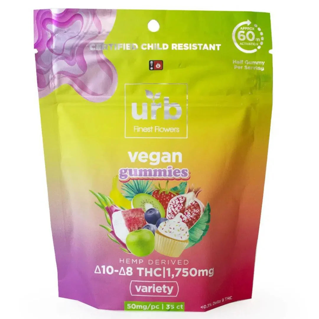 Elevate your D8 experience with URB Delta 8 Delta 10 Vegan Gummies, the latest addition to URB's prestigious lineup of premium hemp products. Crafted by one of the industry's leading brands, these vegan gummies are meticulously formulated to deliver a potent and consistent dose of 50mg of delta-8 THC per gummy, totaling an impressive 1750mg per bag. URB's commitment to quality shines through in every aspect of these gummies, from their vegan and gluten-free ingredients to their non-GMO formulation, ensuring a guilt-free and enjoyable experience for all users.