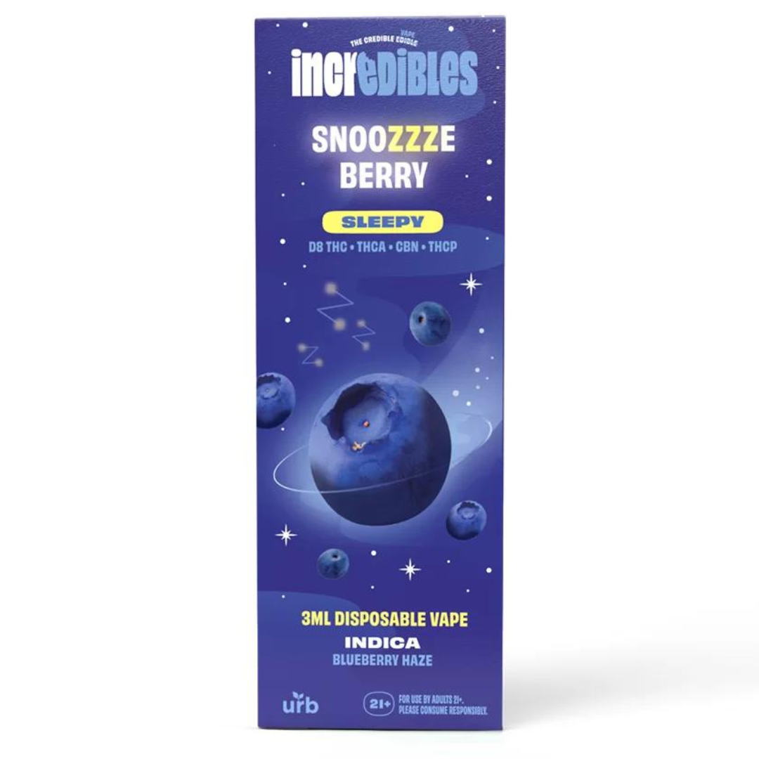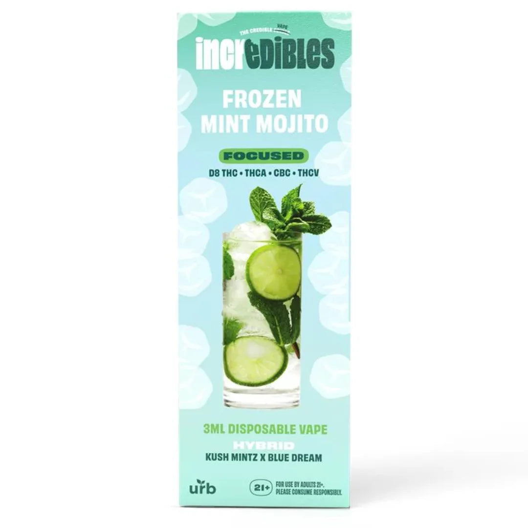 Discover the extraordinary URB Incredibles Disposable collection, where each of the five unique flavors is meticulously crafted to fulfill the specific effects and desires of discerning consumers. This range of 3g disposables offers unparalleled consistency, extending the quality of our award-winning edibles into the realm of vaping. Whether you're drawn to the exotic charm of Pineapple Express or the calming allure of Snoozzzeberry, each flavor promises a one-of-a-kind experience. From the crisp zest of Frozen Mint Mojito to the bright and uplifting Lemon Lift-Off, every flavor is crafted to satisfy both taste and effect. The Snoozzzeberry, in particular, combines Blueberry Haze with calming cannabinoids, earning multiple Cannabis Cup accolades for its ability to promote peaceful slumber.