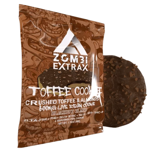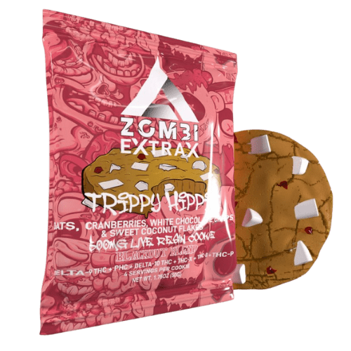 Introducing a brand new edible collection from Zombi. This collection is a collaboration between Zombi and the famous Delta Extrax. They?re come together to create the Zombi Extrax Blackout Blend Cookie. These cookies are incorporated with 500mg of a proprietary blend of 6 powerful cannabinoids: delta-8 THC, delta-10 THC, THC-B, THC-P, PHC, and THC-X. By fusing these into a single edible, it produces what is known as the entourage effect. This is when they work together to induce a very potent experience.